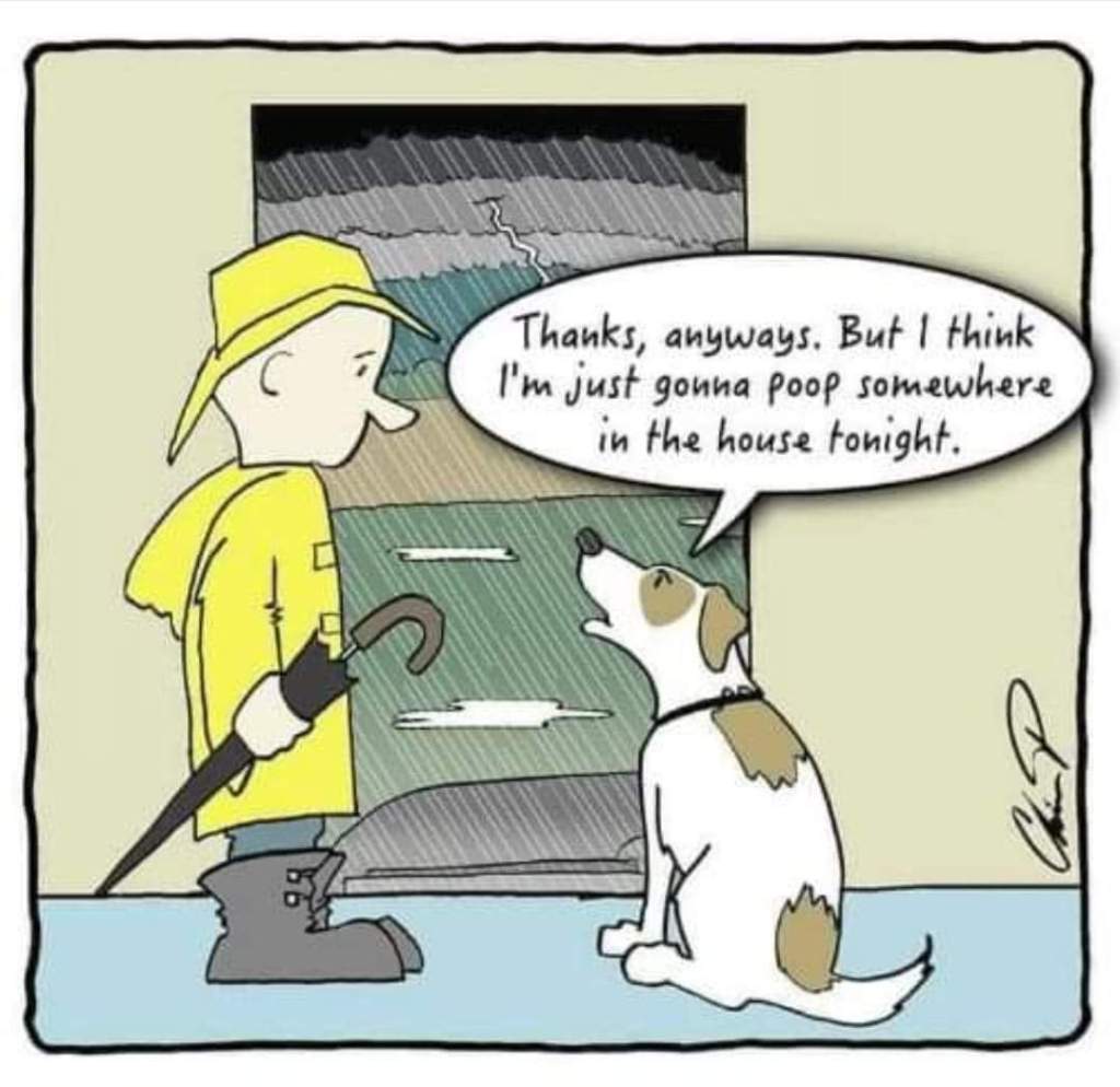Today’s post has the theme of the physical and mental health of dogs. I chose this theme today because we took our dog Rollo to the veterinary emergency room a couple of days ago because he threw up three times within six hours. He had been chewing on a lot of rawhide which is a bit risky, so we were worried. He got an X-ray and various blood tests. Everything was normal. It was probably just a stomach flu or upset stomach. He received anti-nausea medication, and he is taking anti-diarrhea medication. However, everything is otherwise fine with him. The cartoons below speak for themselves.