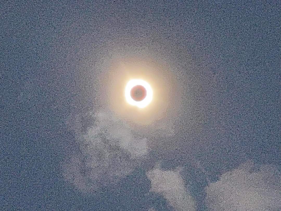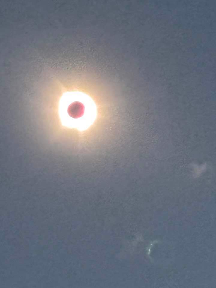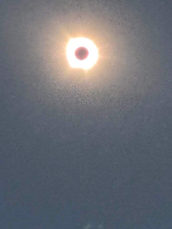 When the total solar eclipse happened it suddenly got dark, but not midnight dark, more like late twilight. The stars came out, the birds and the crickets got quiet, Rollo hid under the table, it felt colder, and straight above us Venus came out bright and shining. You usually see Venus in the west soon after sunset or in the east before sun dawn, not above your head in the middle of the day. You could take off your solar eclipse glasses and look straight at the sun, because it was no longer very bright. What you saw was a big black circle surrounded by wispy foggy lights about as bright as the full moon, maybe a little brighter. That was the sun’s corona, which is only visible to the naked eye during a total solar eclipse. To read more about this event click here.
